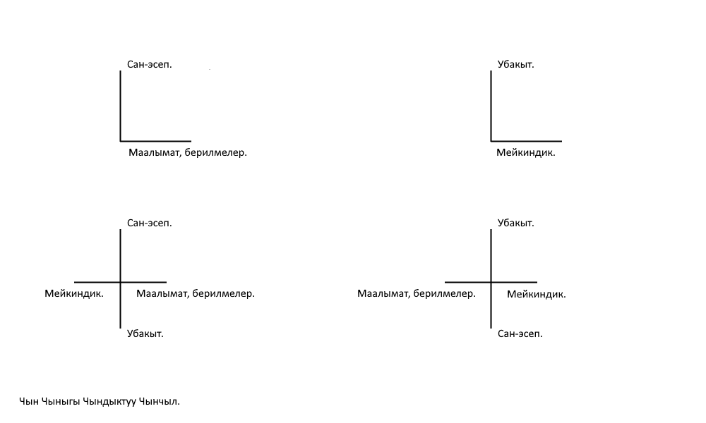 Мурунку жана мурдагы ойлорумду, кабарларымды, жазууларымды бул желе-барактык жыйынымды калыбына келтиргенде кайра коём жана жайгаштырам. Чын чыныгы чындыктуу чынчыл, түзүүчү же жөн эле түзгүч. Жаратылыш жашагысы келет, табият болгусу келет. Адам жана киши өскүсү жана чоңойгусу же жашаргысы келет. Келесоо болгондон кески-кылмышкер болгон жаман, коркок болгондон качкын болуп жүргөн жаман, билимсиз болгондон ыймансыз жана абийирсиз болгон жаман, чала аксак болгондон чыккынчы болгон жаман. Калпка, алдоого, жалганга ишенип жок болгончо, чындыкка тике жана бетке карап турган жана болгон жакшы. Айбан жана жаныбар болуп адилеттикти, акыйкаттыкты, азаттыкты, абийирдүүлүктү, адептүүлүктү туткан жакшы, адаммын жана кишимин деп акмактыкты, абийирсиздикти, акылсыздыкты кылганча. Айбан болсом, ишенип күтөмүн, адам болсом, умтулуп жана аракет кылып, келемин же барып жетемин. Үмүтүм болсо беремин, мага үмүт берсеңиз, келип сиз менен болуп сактаймын. Жакын болсом да, алыс болсом да байкооңузду билгим келет. Бир бүтүн бекем болгон баалуу, баамдуу, барктуу, беделдүү, буулугуп, бозоруп, бытырап, бөлүнүп, бүлүнүп, бузулганча. Бир бүтүн бекемдикке, бардык бүткүлдүккө, байлыкка, бийликке билим багыттайт, байгеге бурат, белек(терди) берет. Билимдүү баатырга бакыт буйрулат. Билимдүүлүктө (билимде) бакыт болот. Билимдүү бүт баарын баштап, болуп, бүтүрөт. Билим - байлыктын, бийликтин, башкаруучулуктун, буйруучулуктун булагы, бутагы. Жакшы жаманды жеңет, накта-нукура, накыл(дуулук) начарды утат. Мен жакшымын деп мактанганча, жакындарга же башкаларга жана калгандарга жакшыны каалоо (туура,) ылайык жана ырас. Жөнөкөй жана жеңил жооп: Жек көрсөңүз, жазылыңыз, жоголгуңуз келсе, жадоону жана жүдөөнү желдетиңиз жана жоюңуз, жаңылганыңызды жабыңыз, жорук-жосун(ду) жыйыңыз жана жыйнаңыз, жайдарылыкты жайыңыз, жакшы көрсөңүз, жолугушалы жана жакын же жаныма жатыңыз, жактырганды жактайм, жылуулукту жана жумшактыкты жаркындыктай жана жыпарлыктай жандап жүрөм, жыргал жашоого жетишем - бирок мен антип айтпайм окшойт. Чың болсом, чыдайм, чыйрак болсом, чамдайм, чынчыл болсом, чакырам, чечен болсом, чымырканам, чебер болсом, чыгармада чагылдырам, чоро болсом, бүт бийик чокуларга чыгам жана ашып өтөм, бүт баарынын борборуна жана чордонуна келем жана жетем, чоң жана чеги, чени, чети жок чынчдыкты чогултам. Түзүүчү же түзгүз болгон да жакшы, сүйүүчү же сүйгүч болгон да жакшы. Чын, чыныгы, чындыктуу, чынчыл. Бул кабар 18, он сегизден ашкандарга: Түзүшүү да жакшы, сүйүшүү да жакшы. Сүйүшүү - бул сүйлөшүү, кабар алышуу, маектешүү, аңгемелешүү, баарлашуу-баардашуу, багышуу, карашуу, кам көрүшүү, ыракаттануу-ыракаттанышуу, бактылууланышуу, берилүү, бөлүшүү, биргелешүү, болушуу, билишүү, сезишүү, сакташуу, коргошуу, куткарышуу. Кошумча сиңишүү менен сергишүү жана сыйышуу менен сыйлашуу же сырдашуу жана самашуу менен сылашуу жана сыймыктанышуу деген да сөздөр бар экен, мен аларды жыйырманчы, 20, XX-кылымда жана экинчи, 2, II-миң жылдыкта эле билгем. Чын, чыныгы, чындыктуу, чынчыл же туура, так, түз, тик, төп түзгүч ([талапка тең тете татыктуу] төбөлүк, түптүк, түйүндүк, тектик, тегиз, тынч, толук туруктуу такай түбөлүк). 23:36:36.259299 6.10.2022 бейшемби GMT + 6 (BSK). Жаратуучу (алл*х жана ку*ай) берет жана алат, аял жана айым алат жана берет, эркек алат жана өзүнө калтырат. 11:36:40.463800 1.11.2022 шейшемби GMT + 6 (BSK) (Мурунку жа